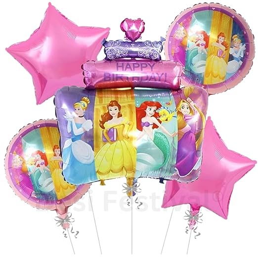 Foil Balloons For Birthday, Girls Parties Items | Set Of 5 Pcs- Princess Birthday Decoration Items For Girl | Theme Decoration (Princess)