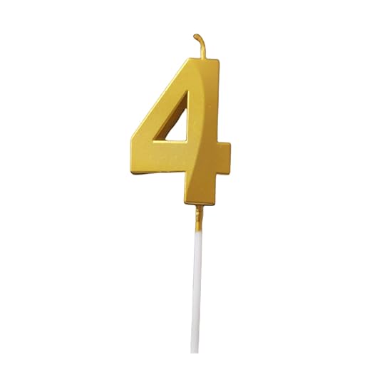 *  Number 4 Gold Candle | Four Number Candle |Number 4 Metallic...