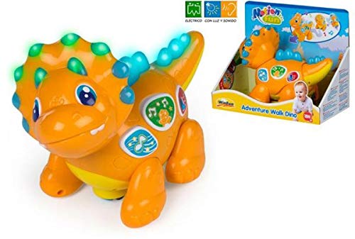 Winfun Adventure Walk Dino, Battery Operated Walking Dinosaur Toy with Learning & Music Modes, Fun Interactive Toys for Kids, Orange/Yellow