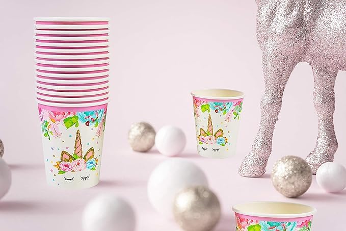 Unicorn Theme Paper Cups, Unicorn Theme Disposable Paper Cups and Glass for Children Birthday Party (pack of 10)