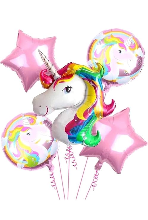 Unicorn Foil Balloon Set Of 5 Pcs Baby Shower Decoration Balloon, First Birthday Decoration Balloon, Latex Balloon, Foil Balloon, Theme Balloon (Unicorn Foil Balloon)