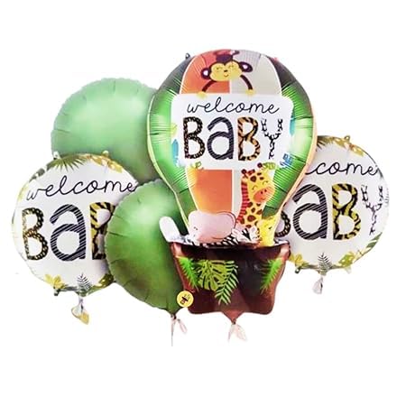 Baby Shower Foil Balloons/Baby Arrival Boy And Girl Foil Balloon/A New Little Prince Welcome Foil Balloon/Baby Shower Decoration Material(Pack Of 5) (Wecome Baby Hot Air Balloon)