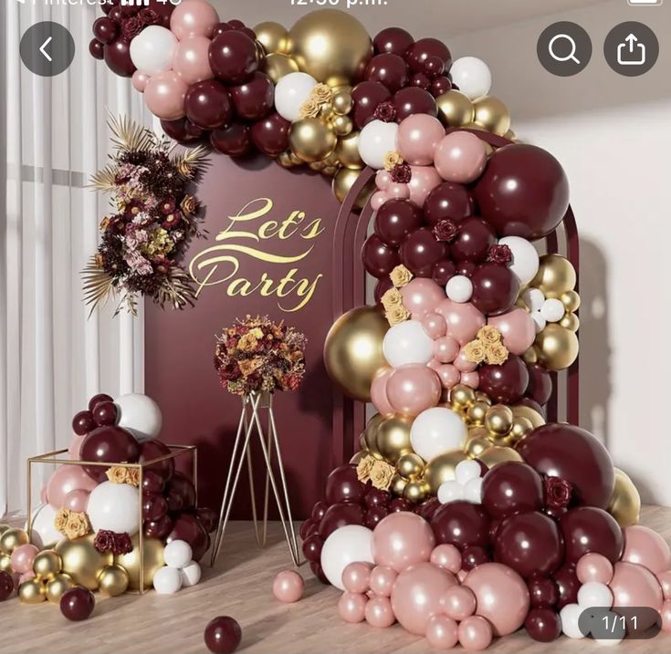 Balloon Decoration With Golden Metalic Latex Balloon ,White, Pink And Maroon Latex Balloon For Bacheloratte Party ,Birthday Party And Anniversary Party( 100 balloon )