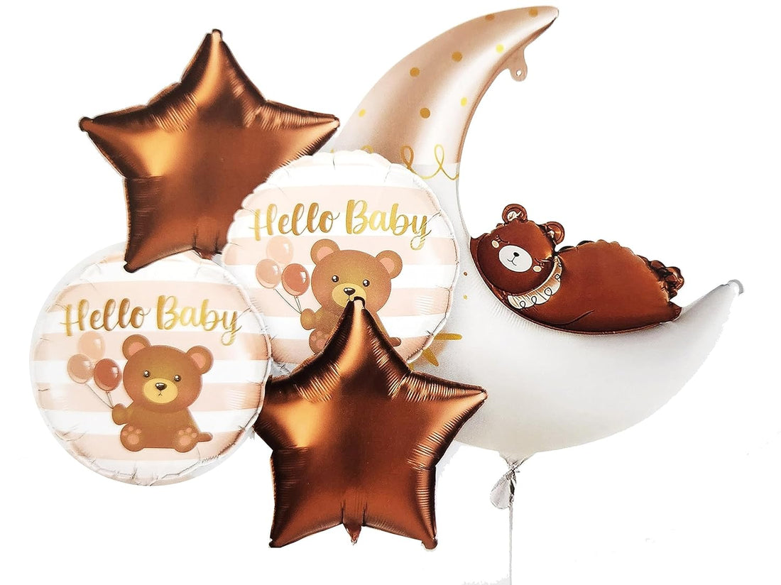 Baby Shower Foil Balloons/Baby Arrival Boy And Girl Foil Balloon/A New Little Prince Welcome Foil Balloon/Baby Shower Decoration Material(Pack Of 5) (Hello Baby Teddy on the Moon)