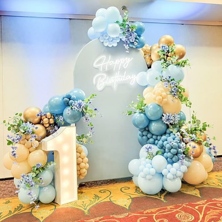 Balloon Birthday Decoration With Sky Blue Dark Blue Yellow And Golden Latex Balloon ( 150 Balloons)