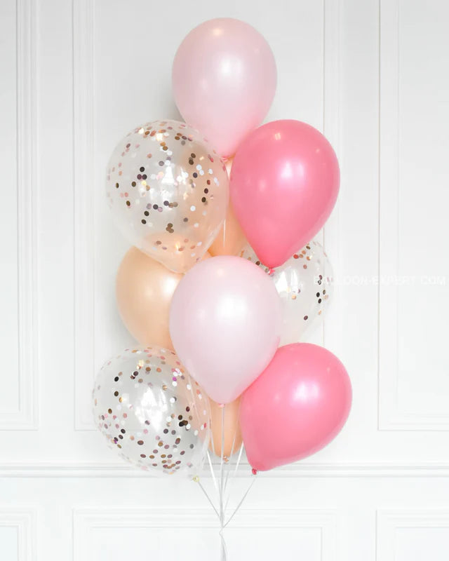 Birthday Balloon Bunch Of White ,Pink ,Gold ,and golden confetti balloon (20 peices).