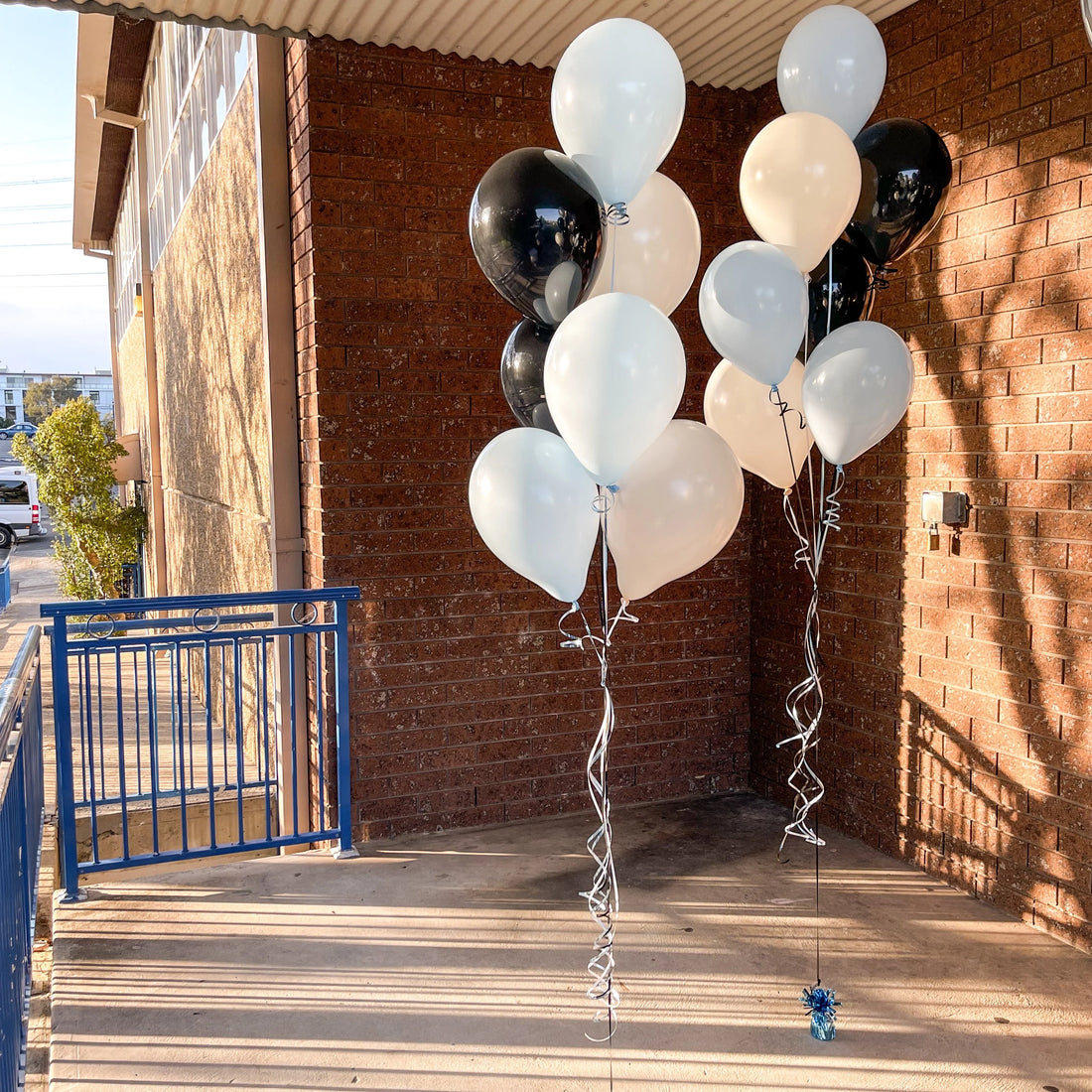Birthday Balloon Bunch Of White, Sky Blue And Black Latex Balloon (18 peices ).