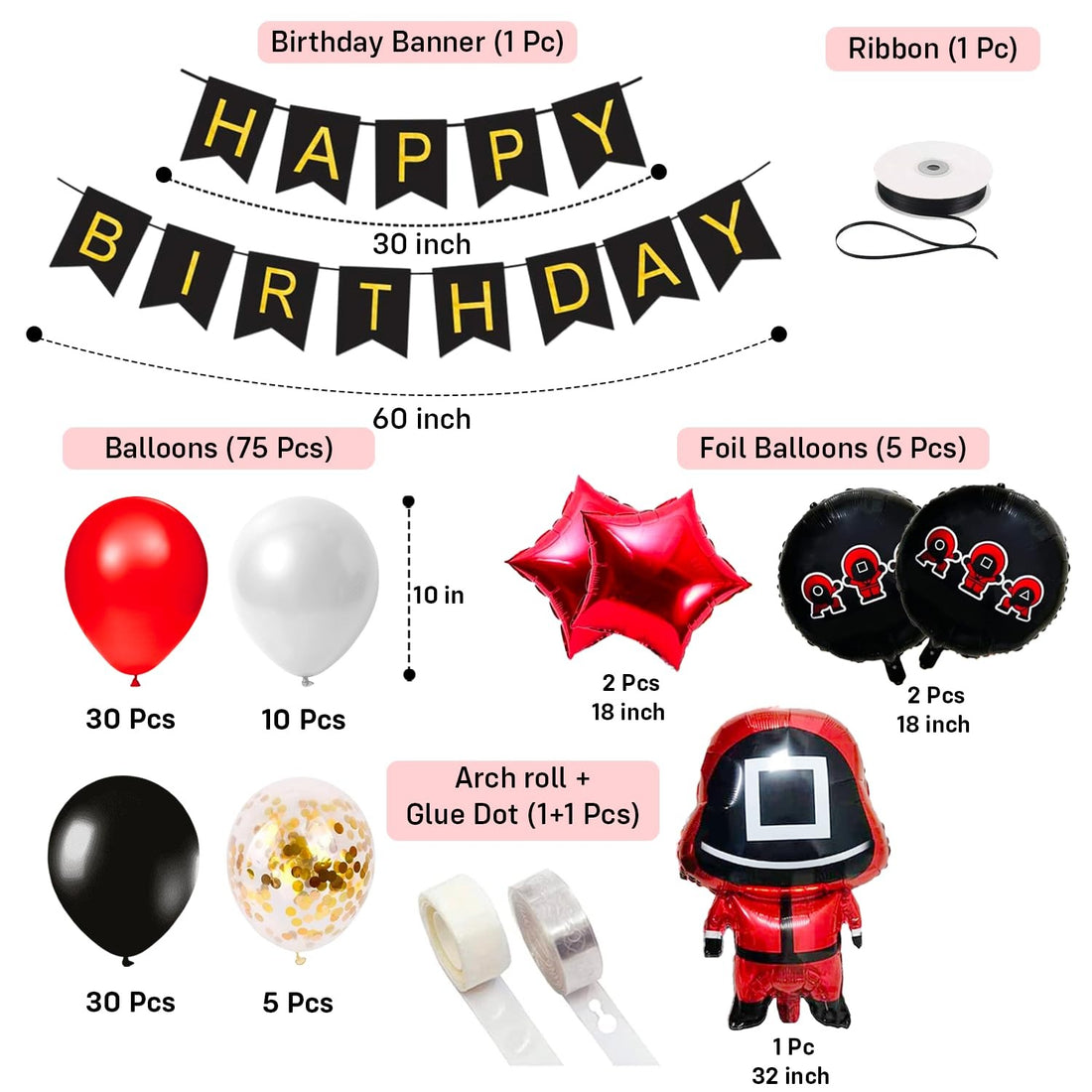 Birthday Decoration Kit - 84 Pcs Game Theme Birthday Decoration Items for Kids, Squid Game Decoration, Happy Birthday Banner, Foil Balloons, Confetti Balloons, Arch Kit & Decor