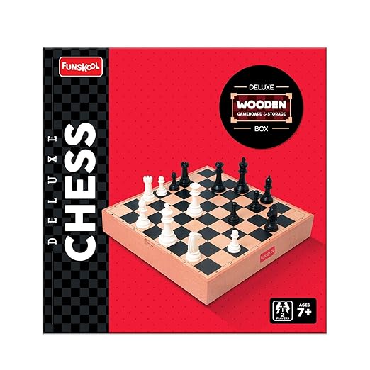 Funskool Games, Deluxe Chess, Wooden Set, War & Strategy, Family Games, Strategy Board Games, Toys for Kids, Wooden Board with Storage Box, Adults & Family, 2 Players, Ages 7 and Above, Multicolour