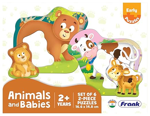 Frank Animals and Babies (Set of 6) 2 Pcs Puzzle -Early Learner Educational Jigsaw Puzzles Set for Kids 2 Years and Above - Educational Toys and Games