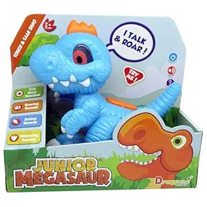 Junior Megasaur: Touch & Talk Dino - T-Rex Blue - Dragon-i, Interactive Lights & Sounds Dinosaur, Talk Back Function, Battery Powered, Kids Ages 2+