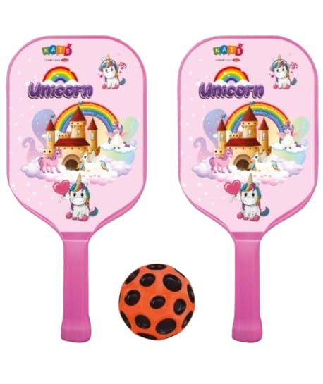 Fairyfolic Kids Pickleball Racket Set – 2 Lightweight Paddles 1 Soft Moon Ball – Fun Indoor & Outdoor Game for Kids – Unicorn & Space Designs Friendly Sports Toy for Boys & Girls (Pink-Unicorn)