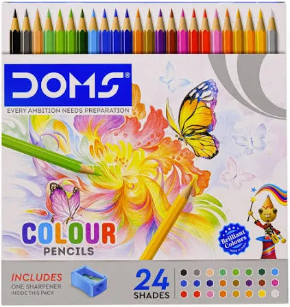 DOMS Full size colour pencils are available in 24 assorted brilliant colors.
