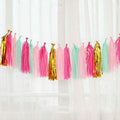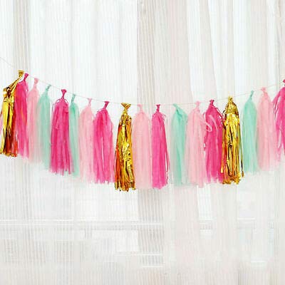 (15 Pcs., 3 Mtr.) Tissue Paper Tassels Garland Wedding Home Decor Crafts Birthday Party Events Supplies Balloons Ribbon - (Light Pink, Green, Golden & Dark Pink