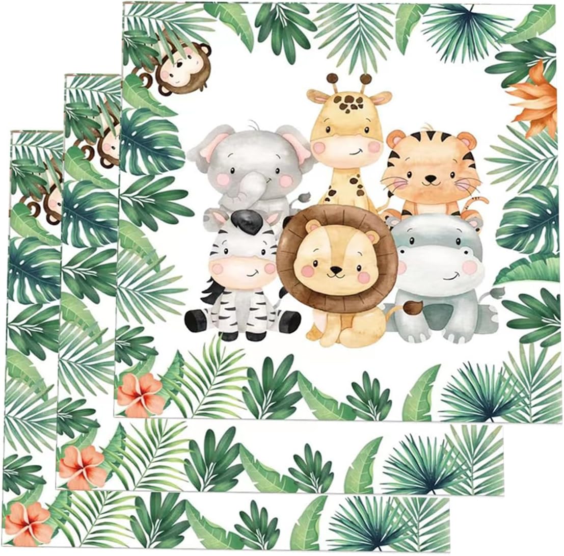 20 Pcs Jungle Safari Animal Napkins - Party Disposable Dinner Paper Napkins for Baby Shower Birthday Themed Party