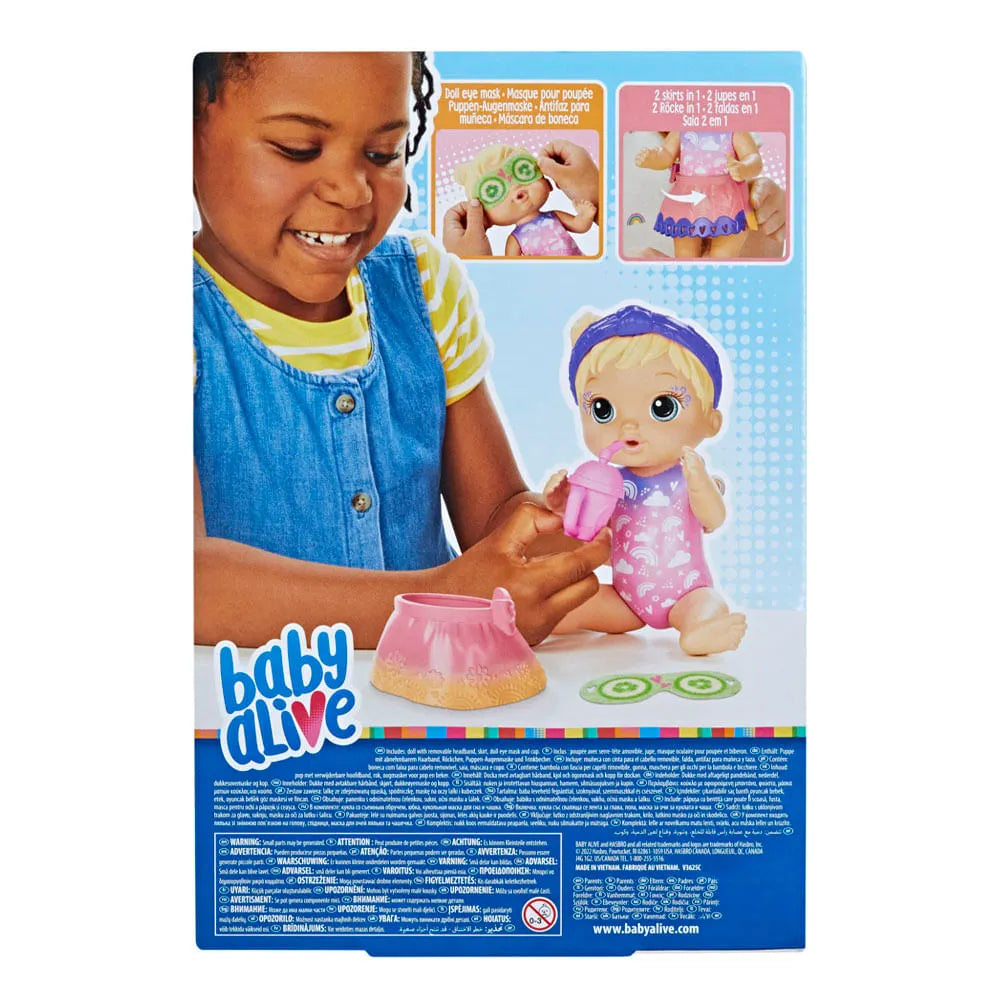 Bring home the ultimate spa day fun with the Baby Alive Rainbow Spa Baby! This adorable doll features color-changing eyeshadow and facial mask play, perfect for your little one's imaginative spa sessions. Dressed in a vibrant rainbow-themed outfit with a cute skirt, she comes with 4 spa-inspired accessories, including a pretend smoothie cup and a relaxing cucumber eye mask. Kids ages 3 and up will love pampering their doll and enjoying hours of roleplay fun. A perfect gift for budding caregivers and little spa lovers!