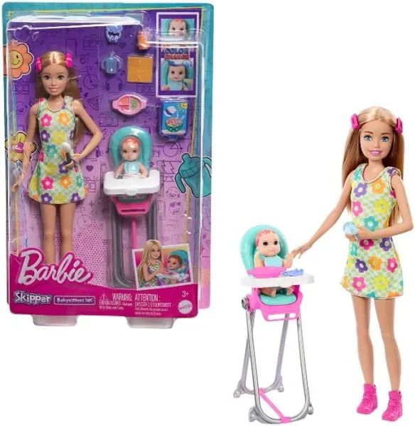 Barbie Skipper Babysitters Inc & Playset, Includes Doll, Baby, And Mealtime Accessories, 10 Piece Set