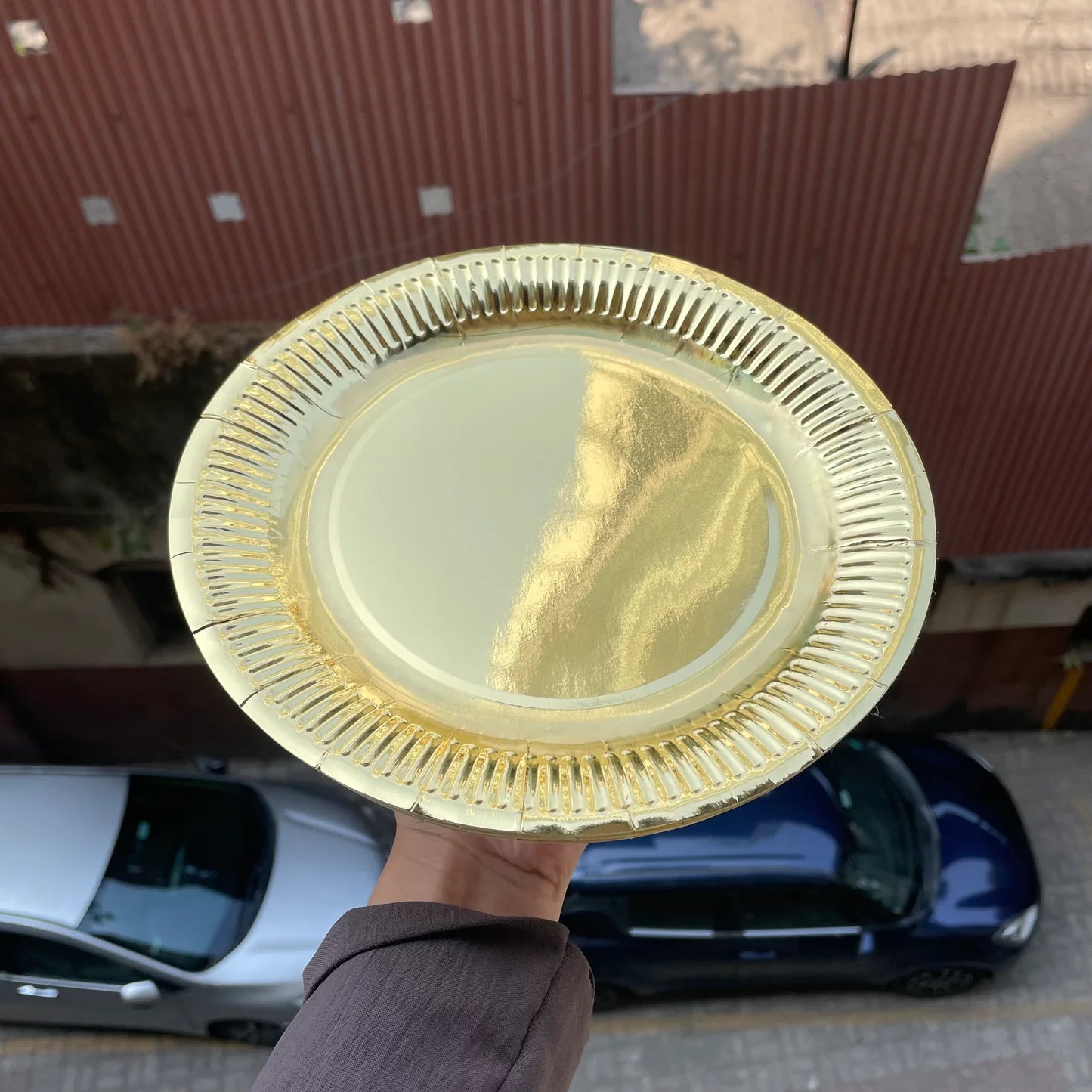 These Foil Gold plates are perfect for serving light snacks or cake and ice cream. Our Gold Plates look stylish on their own and also make great accents for patterned tableware. Keep an extra pack of Gold Plates on hand for quick meals and impromptu get-togethers.