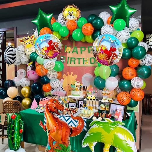 - Jurassic Theme Party Set: mainly designed around Jurassic Animal, featured with plentiful colors and realistic details, it is not only can light up your theme party, also can be regarded as photography background and props for you to take beautiful selfies with your family and friends, make your party more interesting and attractive.