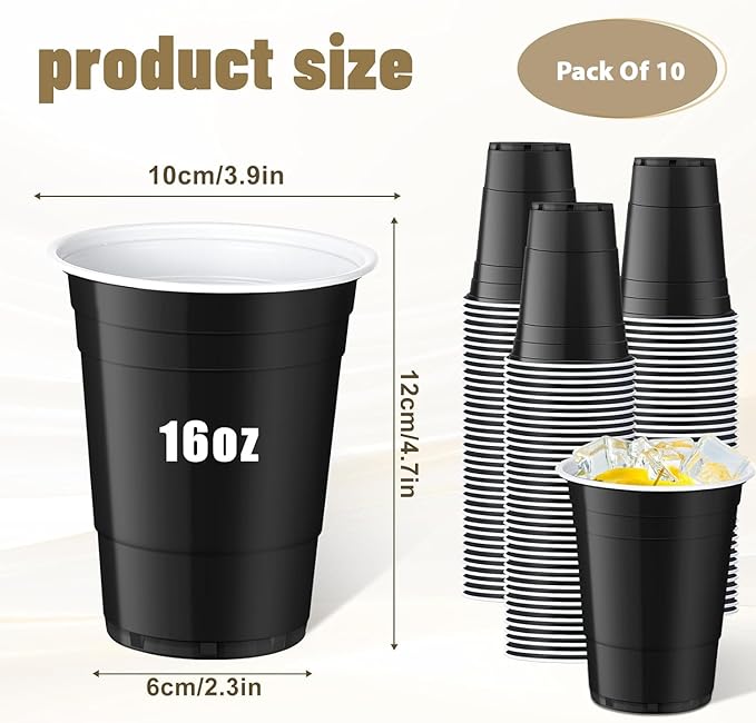 - Premium 16 oz (475 ml) black solo cups designed for both party drinking and beer pong game.