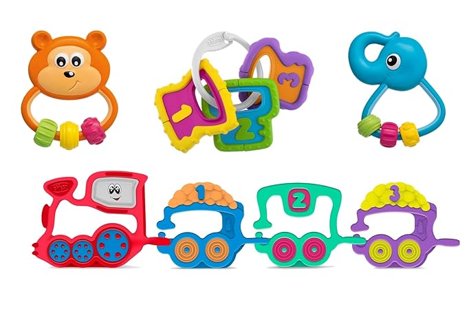 Includes: Easy Grasp Elephant, Bear, Keys and a Little Train 123.