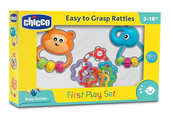 Chicco 4-Piece Play Set Rattles | Colorful Baby Toys for Sensory Stimulation and Motor Skill Development | 3 to 18 months