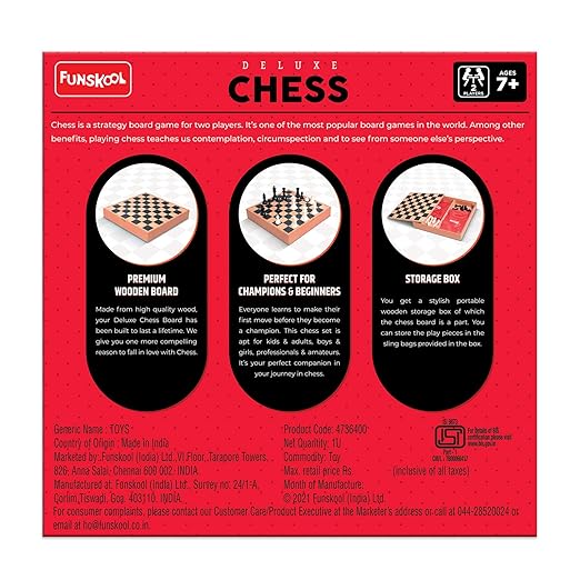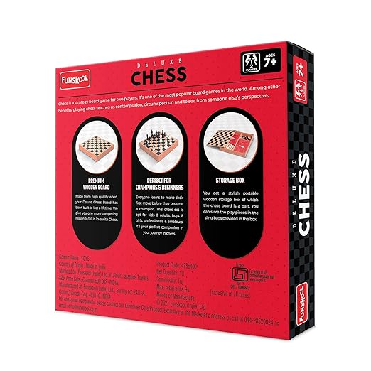 Funskool Games, Deluxe Chess, Wooden Set, War & Strategy, Family Games, Strategy Board Games, Toys for Kids, Wooden Board with Storage Box, Adults & Family, 2 Players, Ages 7 and Above, Multicolour