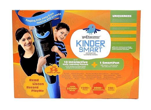 goDiscover Kinder Smart Interactive Learning Series with Talking Pen, Set of 18 Interactive, Paper-Based Multi-Sensorial Posters (3-6 Year Old)