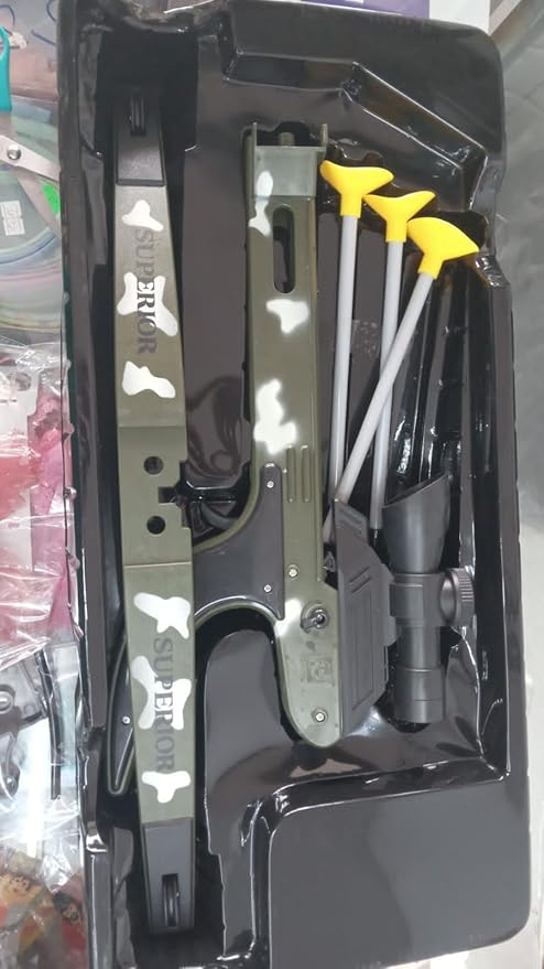 - This crossbow real action set comes with suction flying darts. Helps kids develop aiming and archery skills. Gives the feel of a real crossbow. Crossbow shooting toy set with laser targets, crossbow archery simulation with 3 suction arrows High Quality Archery Crossbow Set for kids. Package Includes Crossbow with Infrared Laser, 3 Suction Cup Arrows, Quiver and a Target Board.
