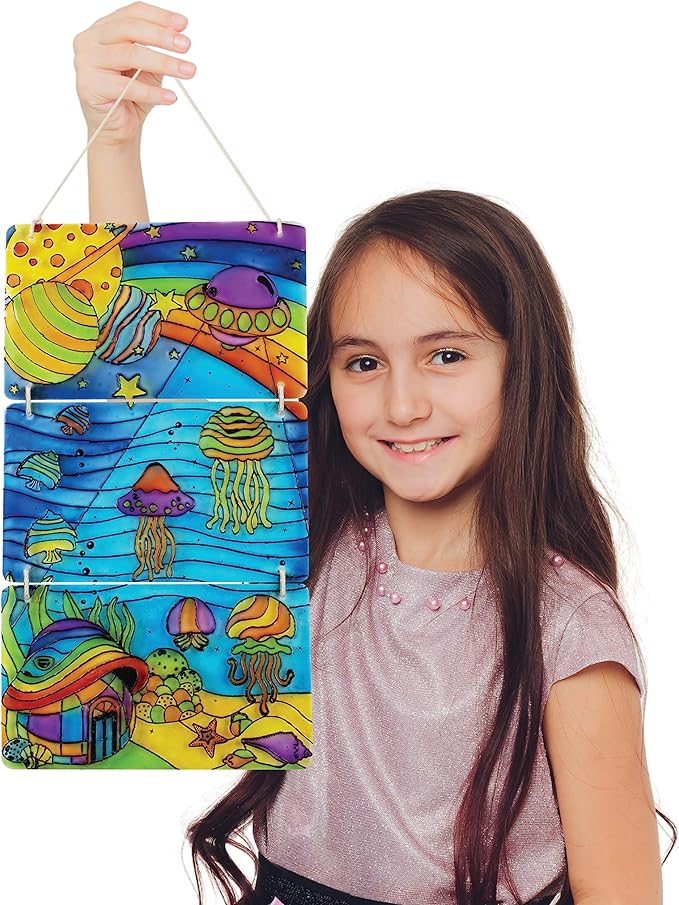 Handycrafts Glass Painting Deluxe, Arts and Crafts Kit, Create a Colourful Wall Hanging, Ages 6 Years and Above, Multicolour