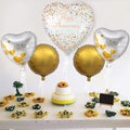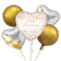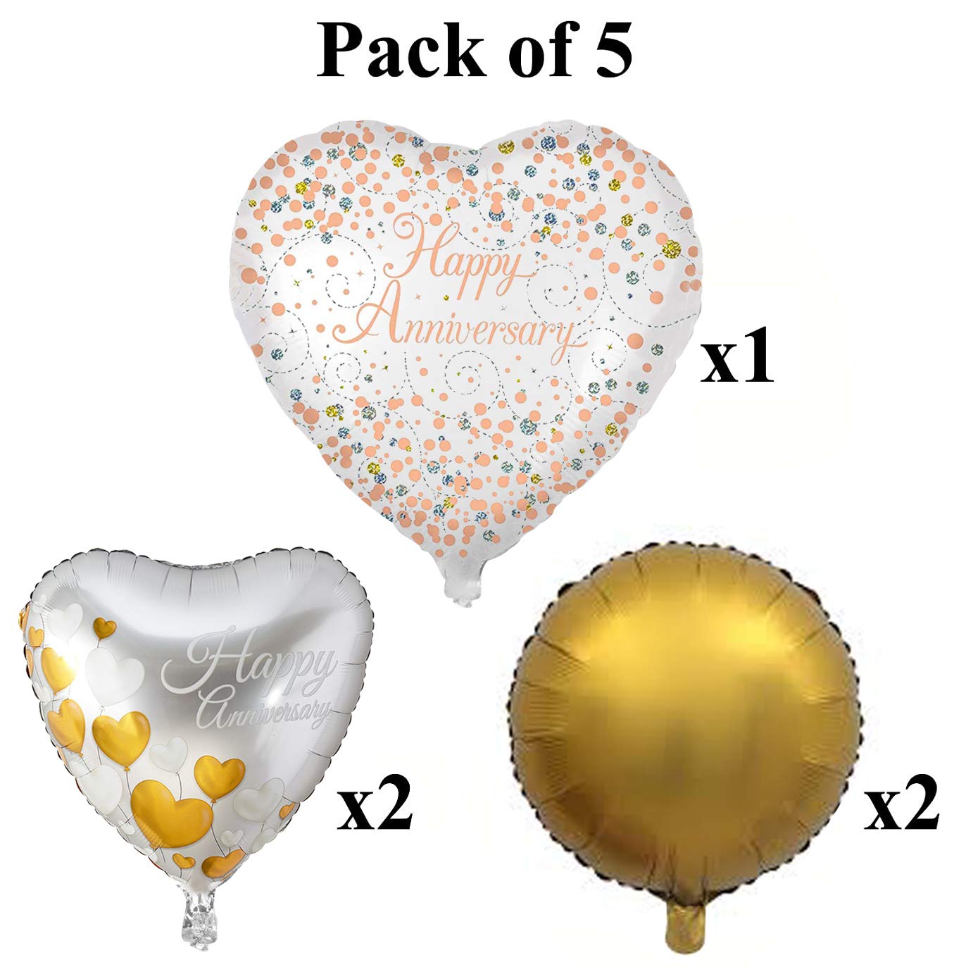 - Package contains: 1Pc Happy Anniversary Paper Garland with Set of 5 Happy Anniversary Foil balloons: 1Pc 22inch Big Happy Anniversary Printed Heart Shape Foil Balloon, 2Pcs 18inch Heary Shape Foil Balloons, 2Pcs 17inch Golden Round Shape Foil Balloons.