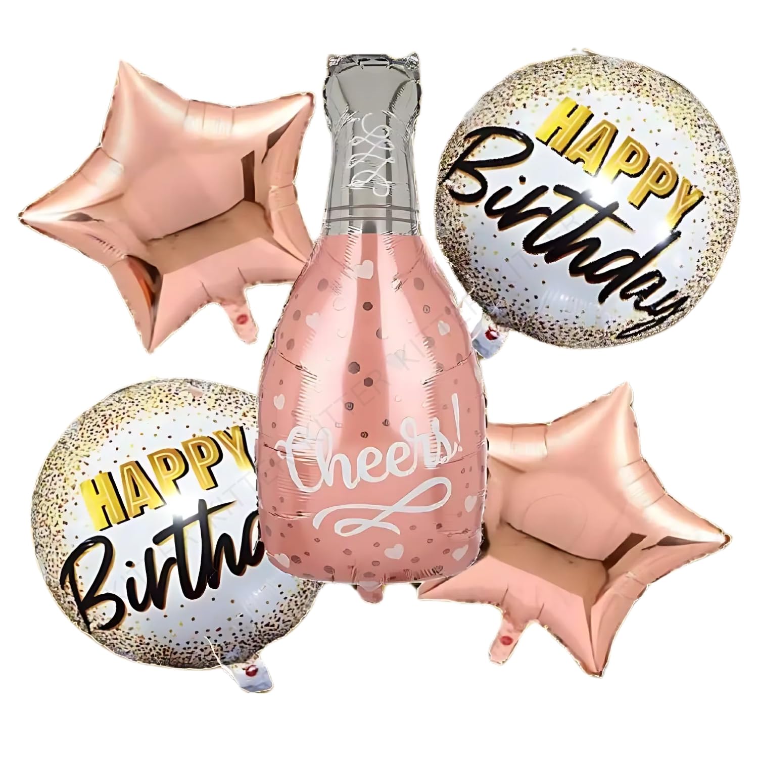 Happy Birthday Foil Balloons, Set of 5, Rose Gold | Birthday Balloon Bouquet | Champagne Bottle Balloons For Decoration | Wine Bottle Cheers Foil Balloon for Party