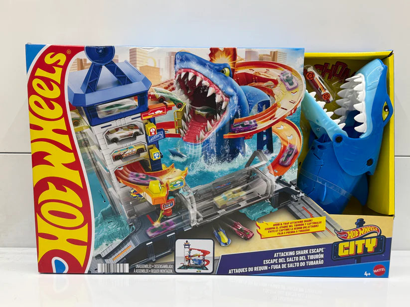 - A massive shark lurks beneath the Hot Wheels™ City parking garage, attacking and devouring unsuspecting vehicles.