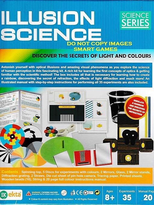 - Discover the secrets of light & colours in illusion Science Kit. Illusion Science kit is a Learning & Educational Game. Explore Light, Optics and Perception Amazing Optical Illusions.