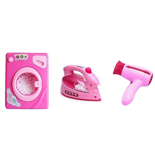 - Mini Battery Operated Kitchen & Household Set of 6 House Hold Home Appliances Toy Set for kids. Set Includes:: Sewing Machine, washing Machine, Hair Dryer, Vacuum Cleaner, Table Fan and Iron.
