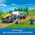 - What’s in the box? – Everything kids need to build a toy police K9 SUV, trailer, 3 dog training apparatus and a training ground setting, plus 2 minifigures, a dog figure and a puppy figure