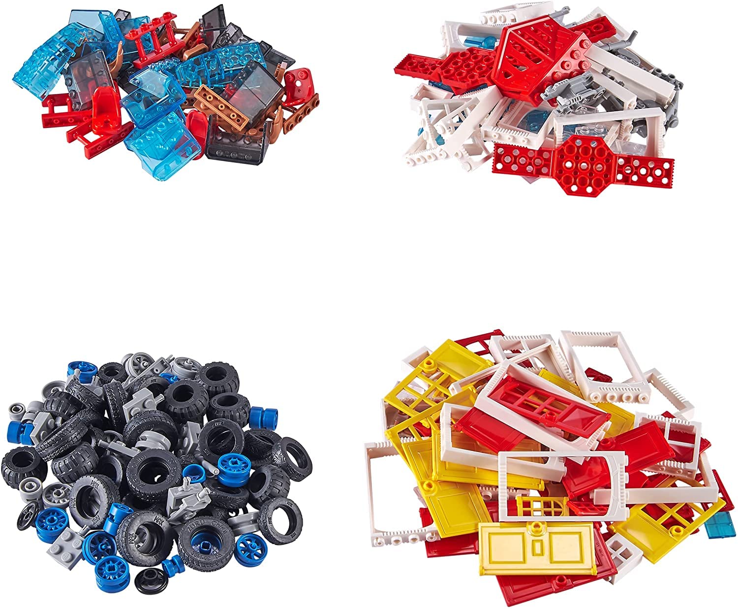 - Kids can build and play for hours with 8 different types of toy windows and toy doors, 2 green baseplates and 6 toy tires and toy wheel rims.