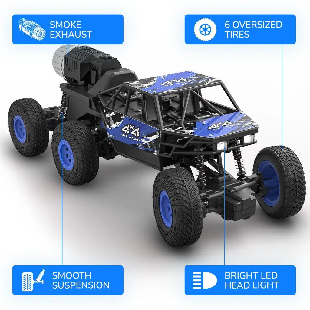 Mega Ranger App and Remote Control Car - Dual Motor, LED Headlights, Smoke Exhaust, 6 Drive Wheel, 2000 mAh Li-ion Rechargeable Battery, C Type USB Charging