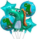 (Pack Of 5) Balloons Dinosaur Birthday Balloons Dino King Theme Happy Birthday Balloon Combo Set Party Decoration - Foil, Green