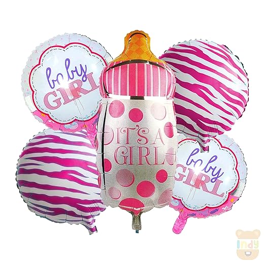 (Pack of 5) Bottle Shape Baby Shower Foil Balloons Baby Shower Decoration Material Its a boy Decorations - Pink