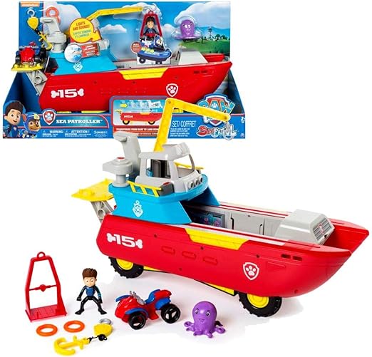 - FROM LAND TO SEA & BACK: The Sea Patroller uses drop-down wheels to transform from ship to land vehicle and back, to take pups on new and exciting missions (The Sea Patroller is equipped to sail the imaginary ocean, but cannot be submerged in water)