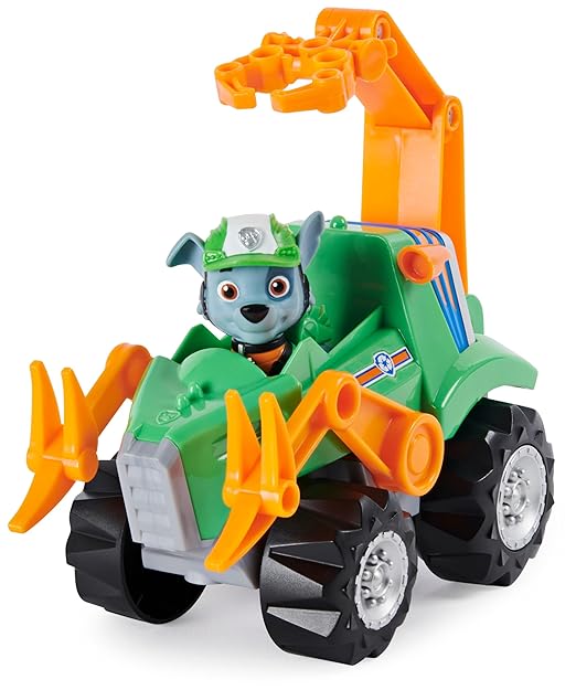 - COLLECTIBLE ROCKY FIGURE: Wearing his green and orange Dino Rescue uniform, place Rocky behind the wheel of his Deluxe Vehicle. This pup is ready for prehistoric adventures!
