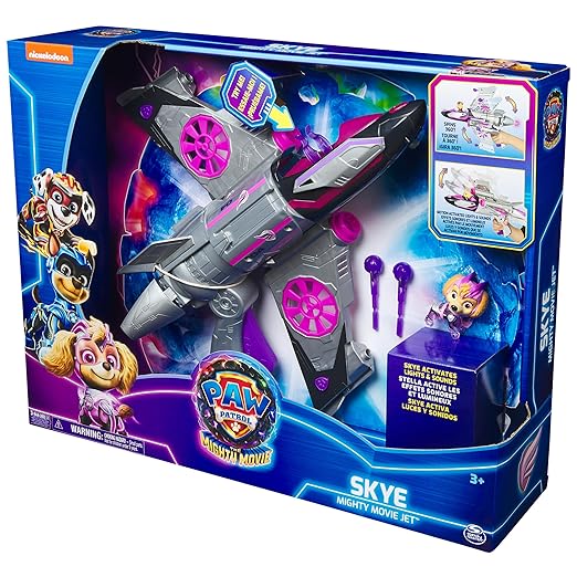 - PAW PATROL MOVIE VEHICLE: Designed with authentic details and styling, Skye’s rescue Jet looks just like the exciting toy airplane that Skye uses, to save the day in PAW Patrol: The Mighty Movie!