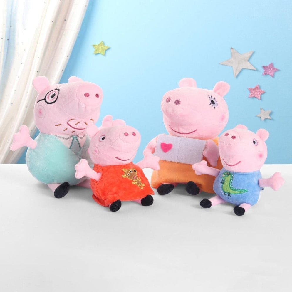 - COMPLETE SET: Features the entire Peppa Pig family in soft plush form, perfect for imaginative play and cuddles