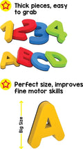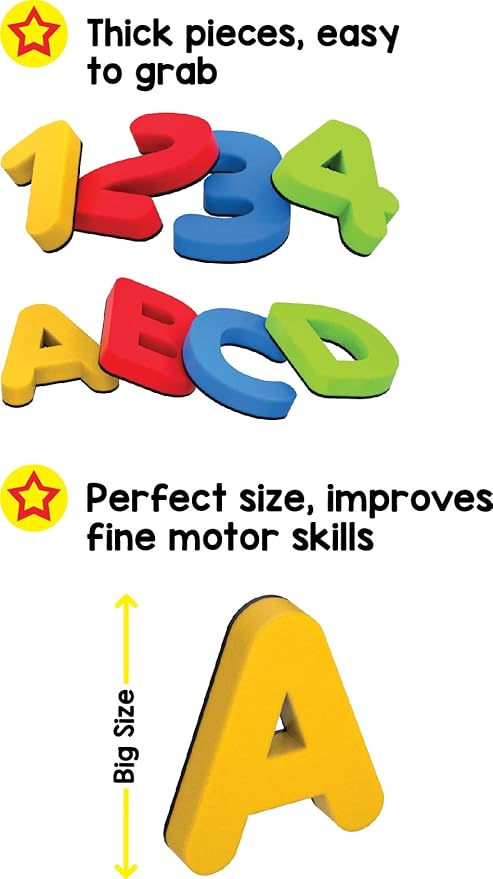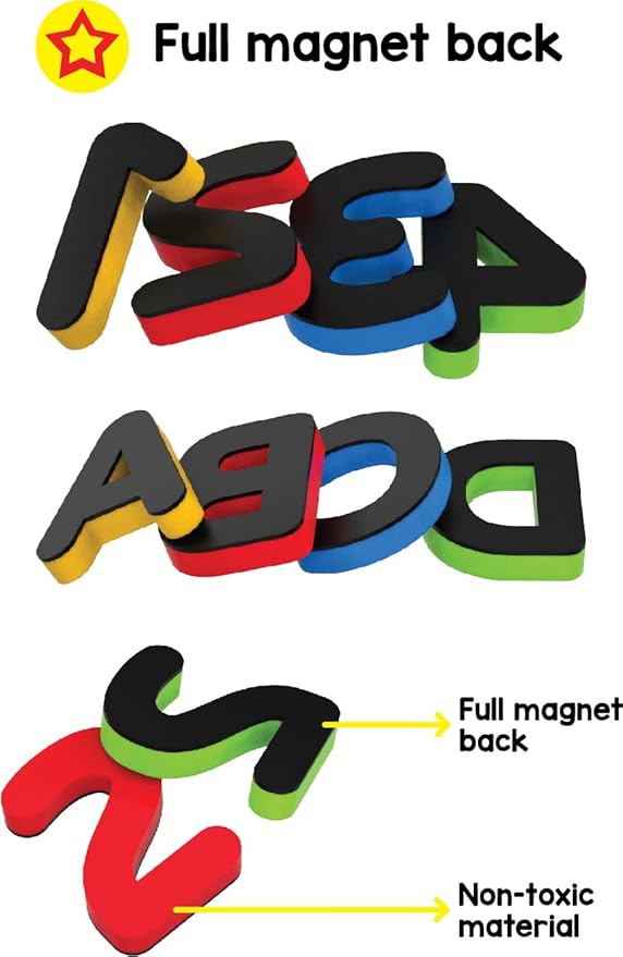 - You’ll discover exactly why kids fall in love with our thick, soft-touch foam letters. Not too big and not too small but just right, they’re perfectly sized, easy to grip and improve fine motor skills, The strong, full magnetic backing provides the best hold, and is safer with no small magnets to be lost, or even worse swallowed