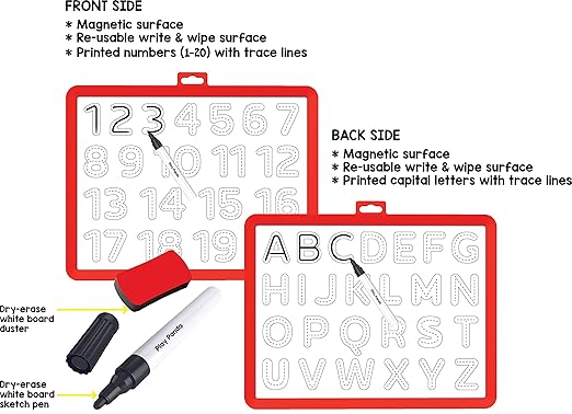 Play Panda Magnetic Learn to Write Numbers & Capital Letters - Includes Write and Wipe Magnetic Board (Both Sides Magnetic).