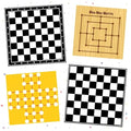 - Comprehensive set includes a game board, five double sided sets of game,16 pawns, chess pawns, checker pawns, 1 dice and 1 instruction manual.