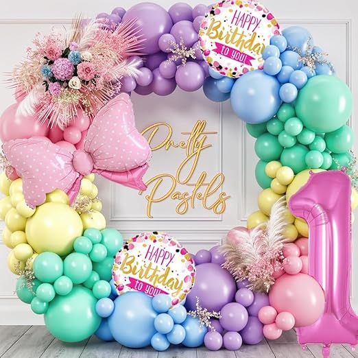 Celebrate your little one's big milestone with this enchanting Pretty Pastels 1st Birthday Balloon Decoration Set! Designed in soft, dreamy pastel colors, this all-in-one balloon arch kit creates a magical backdrop perfect for your baby girl's first birthday.