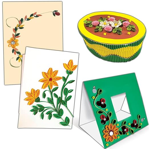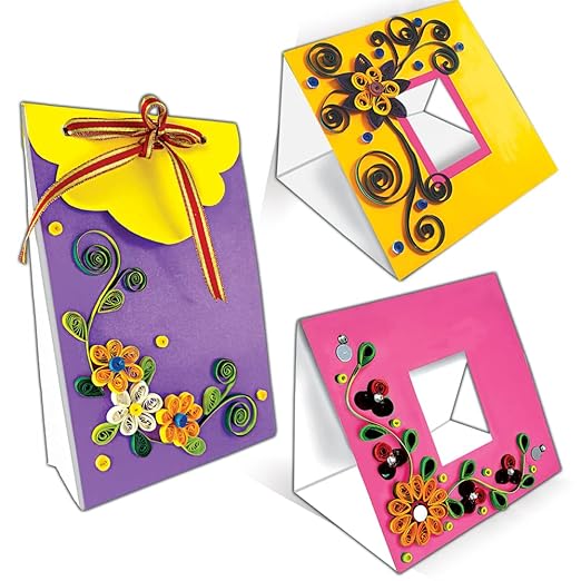 - WHAT CAN YOU MAKE FROM THIS KIT? In this creative craft kit, all the components for Quilling as well as craftwork are provided. So the hobby enthusiast first makes both – the crafted articles as well as the quilled designs. The final products are very usable and are good to gift as well. These include 2 fancy envelopes, 2 greeting cards, a potpourri gift bag, a twin photo frame, a gift box, and a Mini desk-top picture frame.