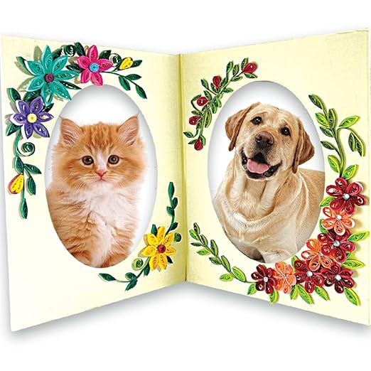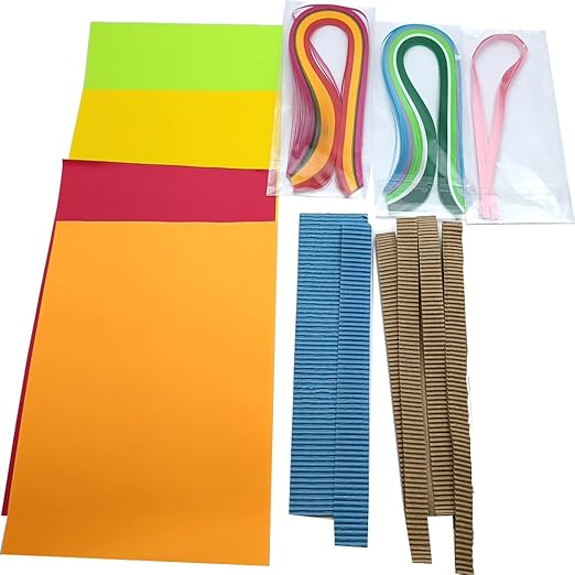 - WHAT’S INSIDE THIS KIT? The Contents in this Toykraft offering are a twin photo-frame, mountboard cut-outs, plain & craft cards, creased paper for envelopes, pre-scored cards, colour paper, corrugated board, artificial gemstones, coloured paper quilling strips and paper quilling tools, ribbons and craft glue, Paper quilling book, and an instruction manual.
